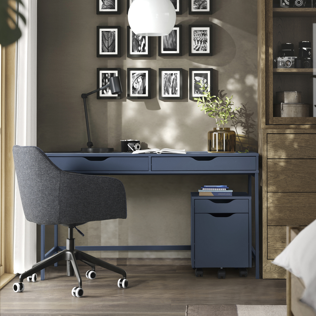 ALEX desk combines smart storage with sleek design. You’ll love the built-in drawers keeping things tidy, the generous worktop, and cable management. Its minimalist style fits any corner or stands freely in the room, offering top functionality and style.