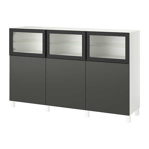 BESTÅ storage combination with doors, LAPPVIKEN dark gray / FÄLLSVIK anthracite / reeded glass / white, 70 7 / 8 "x16 1 / 2 "x44 1 / 8 "