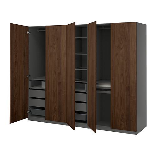 PAX / BJÖRNESKOGEN wardrobe combination, dark gray / walnut veneer