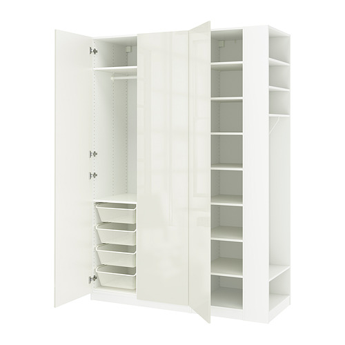 PAX / FARDAL wardrobe combination, white high-gloss white / white