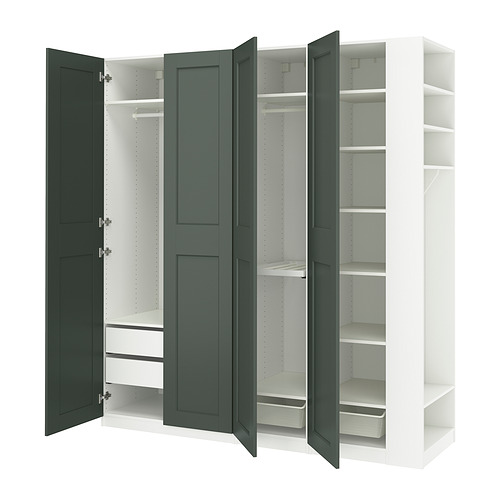 PAX / GRIMO wardrobe combination, white gray-green / white