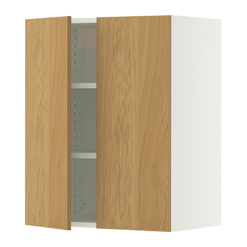 SEKTION wall cabinet with 2 doors, white / Sinarp oak veneer