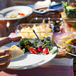 Pizza night, finger food or a garden party? The simple and classic SIMKRABBA in a calm green-grey colour has everything you need for a successful gathering. Reinforced edges make the design sturdy.