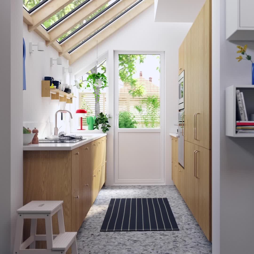 SINARP fronts offer a timeless design with a modern twist, in natural oak veneer with wooden tones full of character. Solid oak edging outlines the front, adding elegant detail to your kitchen.