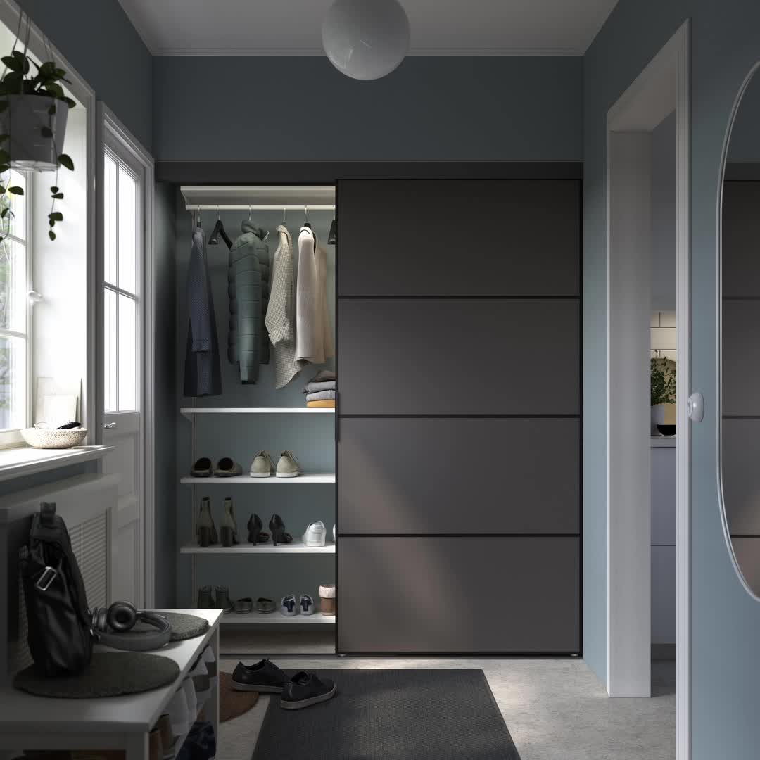 SKYTTA / BOAXEL reach-in wardrobe with sliding door, black / MEHAMN dark gray, 69 5 / 8 "x25 5 / 8 "x80 1 / 2 "