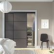 Puertas correderas de armario negras SKYTTA con diseño moderno y elegante y paneles horizontales.
