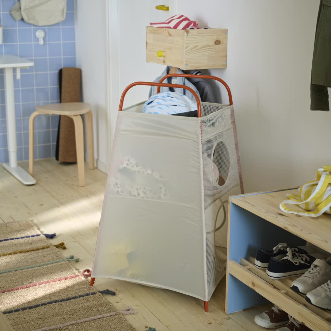 A smart and simple storage that swallows up the children's toys and soft toy animals – and makes it easy to tidy up in a flash, especially if you do it together.