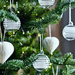 The VINTERFINT collection offers Christmas tree ornaments for many tastes. Here is a glass quartet with white stripes that adds an elegant expression to your tree.