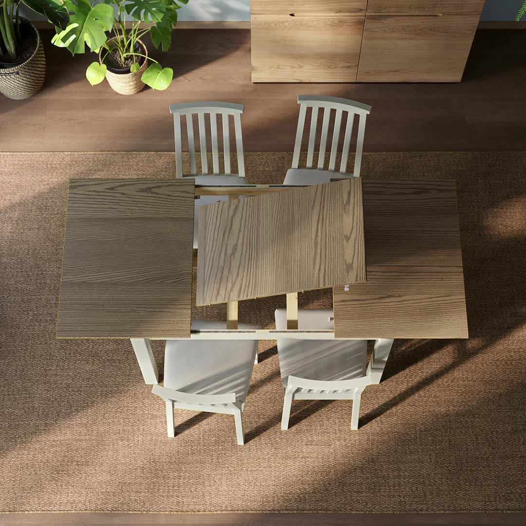 El tablero de extensión aumenta la superficie de la mesa y permite que entren dos personas más.