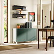 BESTÅ combinación almacenamiento+puertas, Krukmakare gris verdoso oscuro / Stubbarp blanco