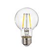 Aunque recuerda a las antiguas bombillas con filamentos, es de LED. Esta bombilla transparente de estilo retro difunde una luz cálida y es perfecta para lámparas con pantallas transparentes o con celosía.