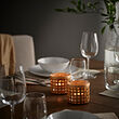 La cálida luz de la vela produce un efecto decorativo al brillar a través del motivo del portavelas.