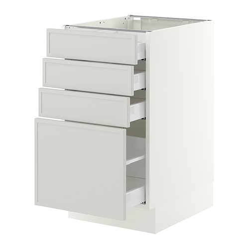 SEKTION / MAXIMERA gabinete bajo+4 cajones, blanco / Aspudden gris claro