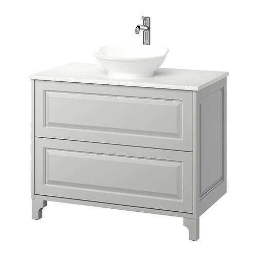 TÄNNFORSEN / VÄSTERSJÖN armario+cajones / lavamanos / llave, gris claro / blanco efecto de mármol