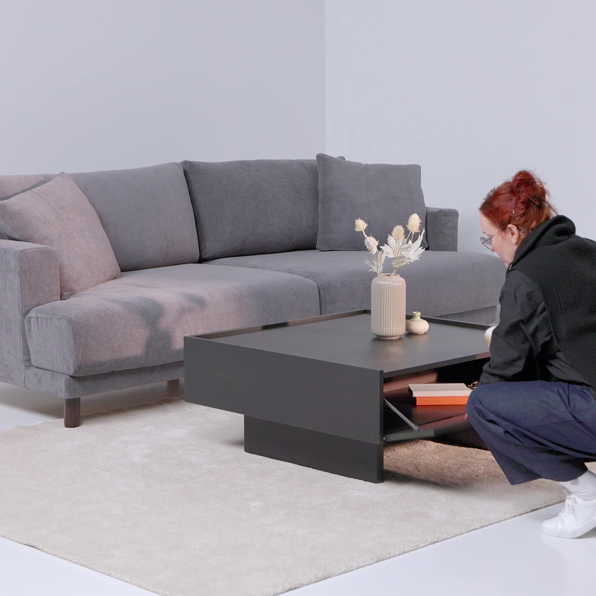 Amplio espacio para todo lo que quieras tener cerca mientras te relajas en el sofá. En la resistente mesa de centro TRANERED, con un amplio tablero, bordes elevados y compartimientos de almacenamiento ocultos, puedes mantener las cosas organizadas.