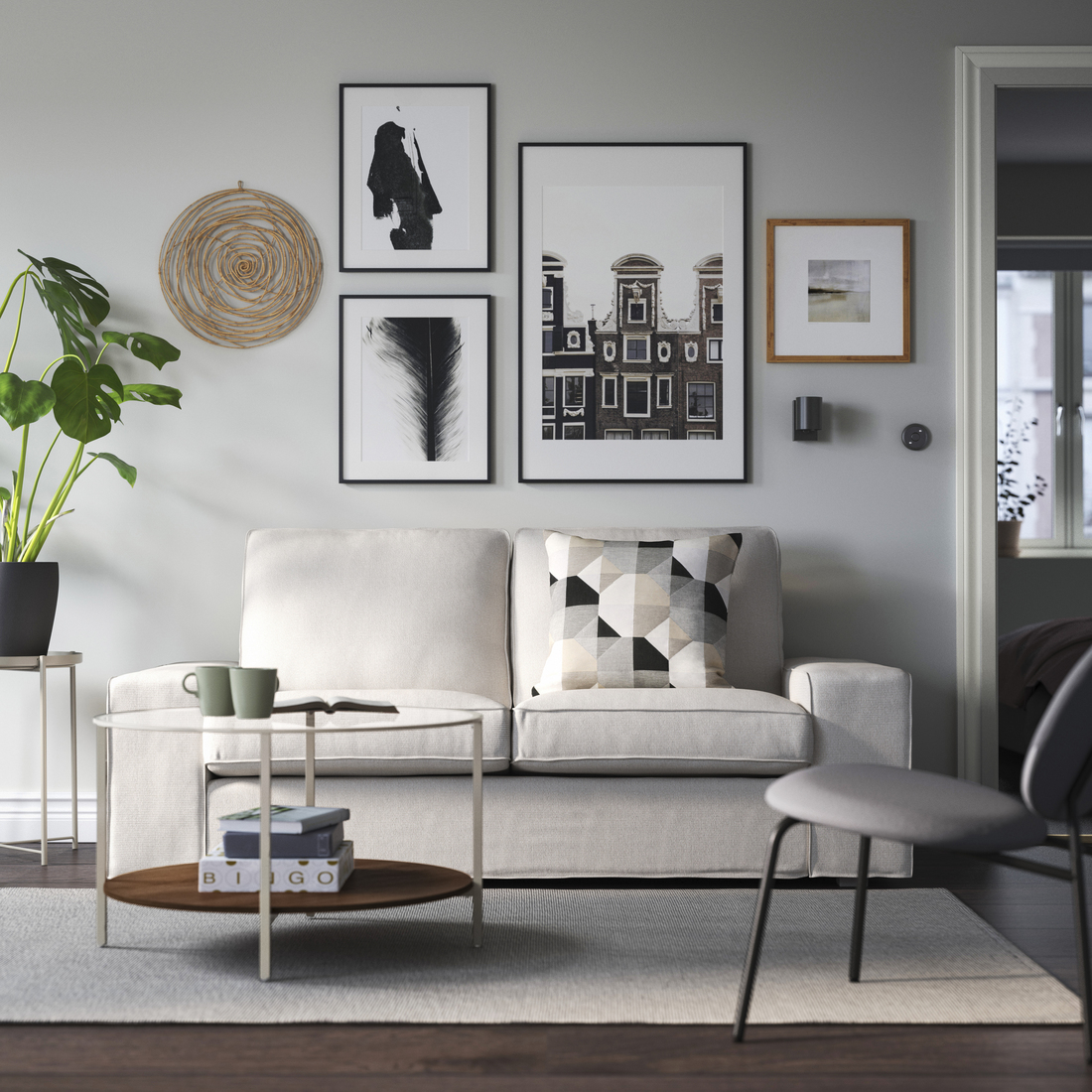 El diseño minimalista, que combina metal, vidrio y madera, crea un estilo sofisticado pero acogedor.