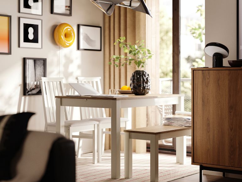 The affordable ÅLHULT series is ideal for creating a cosy dining area in a small space – it’s just as practical as it’s photogenic. Need more room? Pull out the extendable table, tuck in a bench, and make space for surprise visitors.