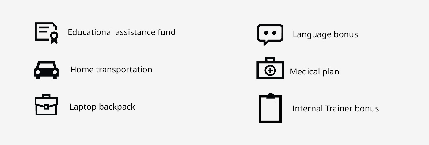 Your professional growth is our priority, because when you advance, we grow together. That's why we offer you benefits that go beyond work.