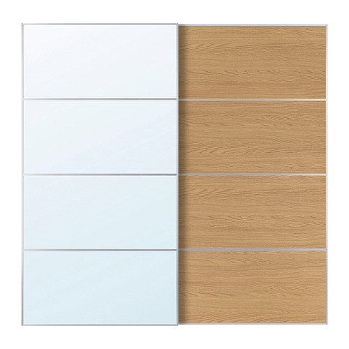 AULI / MEHAMN pair of sliding doors, aluminum mirror glass / double sided oak effect