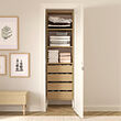 With AURDAL storage system, you can customize a solution for any reach-in or walk-in closet. Beautifully brushed veneer gives a tactile finish with a distinct sense of wood.