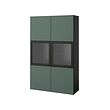 BESTÅ storage combination w / glass doors, black-brown Lappviken / Sindvik walnut effect