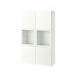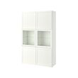 Mueble blanco BESTÅ, alto con 2 puertas de cristal para exposición, 2 puertas macizas. Ranuras verticales, diseño moderno y minimalista.