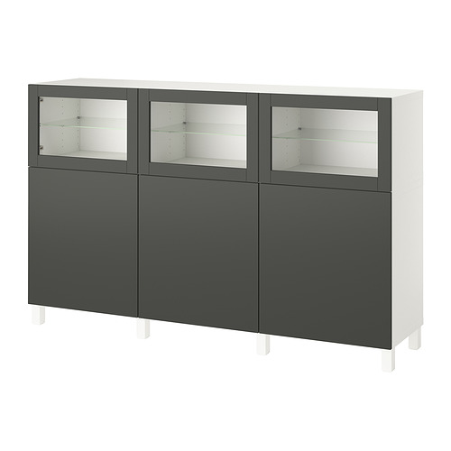 BESTÅ storage combination with doors, LAPPVIKEN dark gray / SINDVIK clair glass*white, 70 7 / 8 "x16 1 / 2 "x44 1 / 8 "
