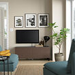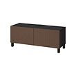 BESTÅ TV bench with doors, black-brown Björköviken / Stubbarp / brown stained oak veneer
