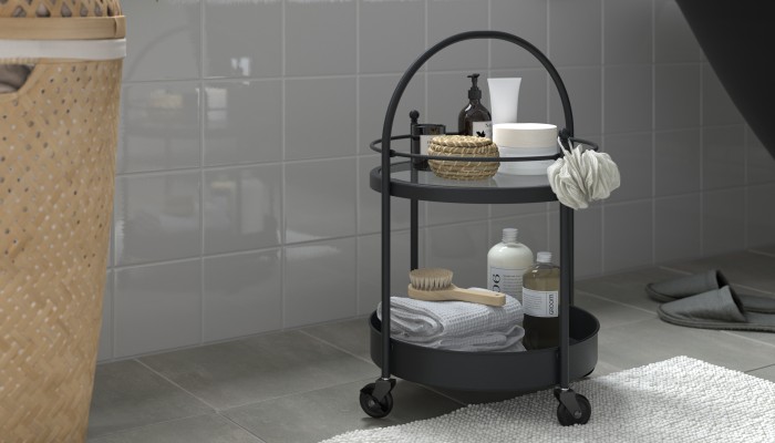 The shelving units in the FRÖSJÖN series help you optimize bathroom storage while adding a traditional twist. A wall shelf creates space for towels and bottles – without taking up valuable floor space.
