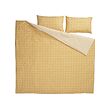 HAMNSENAP duvet cover set has a nostalgic, geometric pattern on one side and yellow stripes on the other – just flip it for an easy refresh! The soft cotton/viscose blend breathes and has a fine sheen.