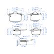 Includes: 1 pot with lid (10.6 qt), 1 pot with lid (5.3 qt), 1 pot with lid (3.2 qt), 1 saucepan with lid (2.1 qt) and 1 saucepan (1.1 qt).