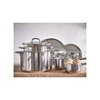 Pot and saucepans include a lid of stainless steel, which brings the food to a boil faster and reduces energy consumption.