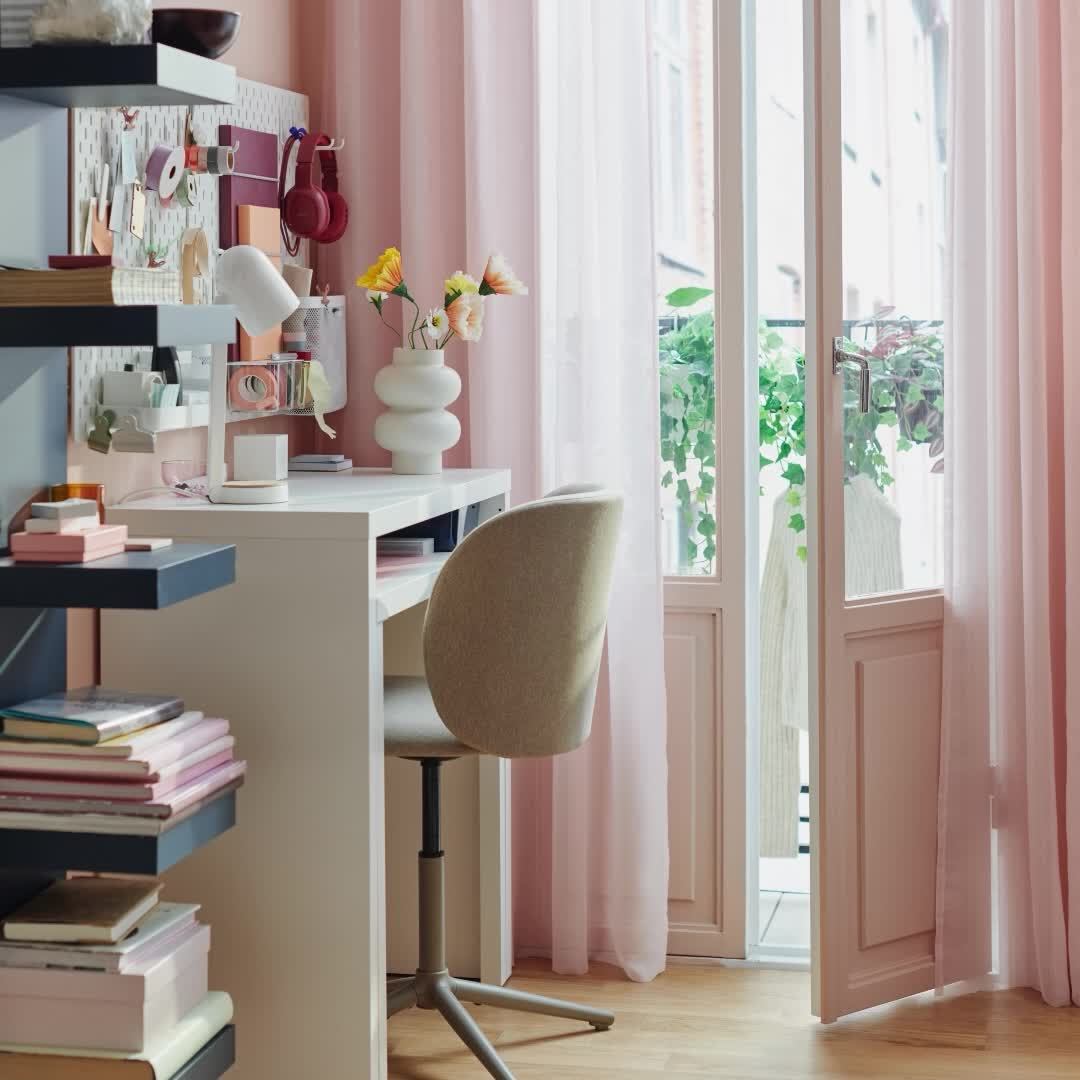 Space-saving desk – slides out when you need it, tucks away when you're done.