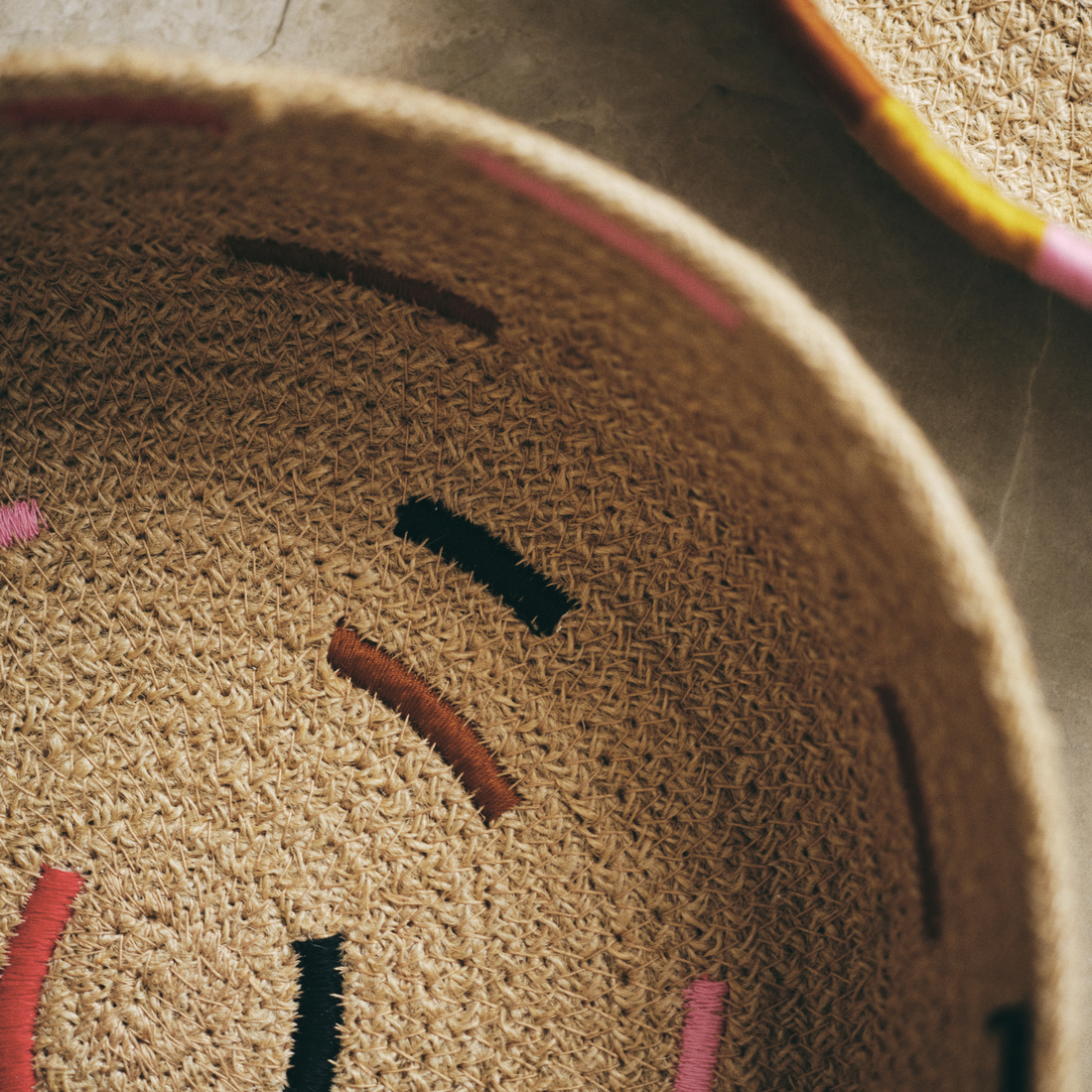 This large basket in braided jute is just as decorative as practical with its hand-embroidered details in cheerful colors. Perfect as extra storage in the hallway, kitchen or living room.