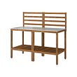 Our NÄMMARÖ outdoor kitchen units come with an acacia wood back panel and three adjustable hooks that keep your outdoor cooking tools, oven gloves, and pots with herbs nearby. This NÄMMARÖ kitchen unit also works as a potting bench, just use the hooks for your gardening tools instead. The wood has been pre-treated to be better protected against sunlight, rain, and stains.
