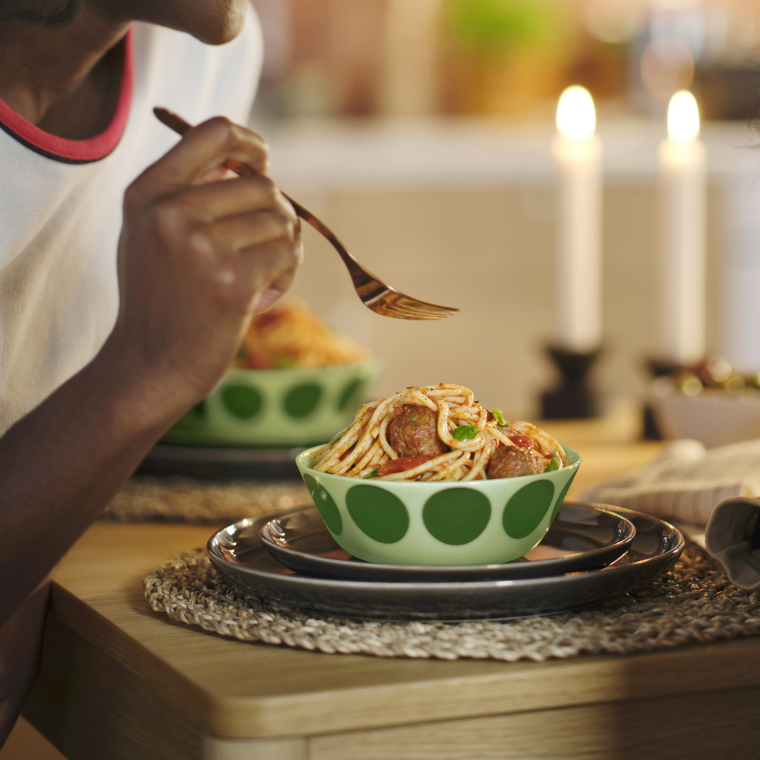 Feel free to mix this green OFTAST tableware with white tableware from the same series to create a table setting that feels both personal and fresh.