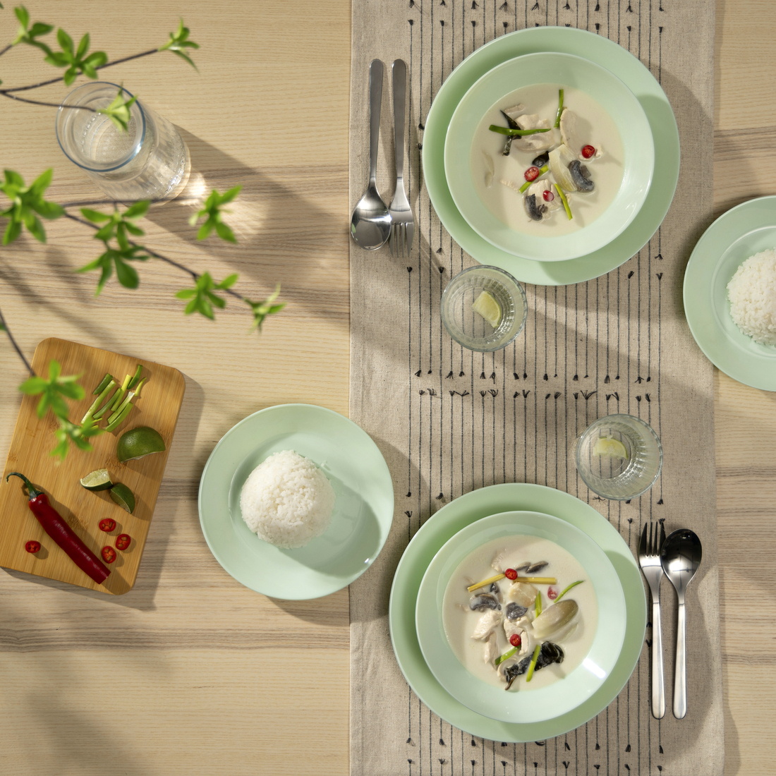 Feel free to mix this green OFTAST tableware with white tableware from the same series to create a table setting that feels both personal and fresh.