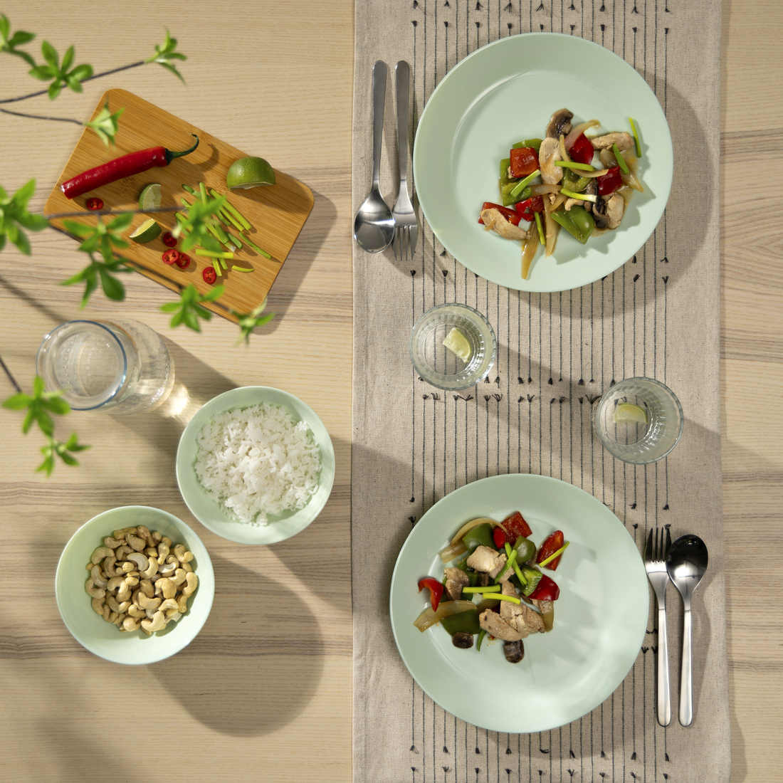 Feel free to mix this green OFTAST tableware with white tableware from the same series to create a table setting that feels both personal and fresh.