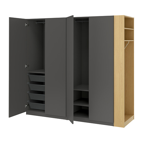 PAX / FORSAND wardrobe combination, dark gray dark gray / oak effect