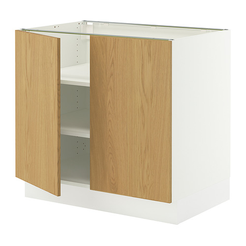 SEKTION base cabinet with shelves / 2 doors, white / Sinarp oak veneer