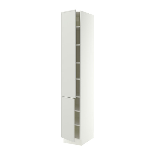 SEKTION high cabinet with shelves / 2 doors, white / Aspudden light gray