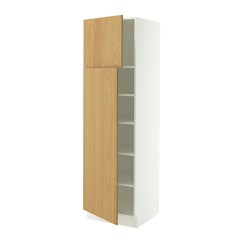 SEKTION high cabinet with shelves / 2 doors, white / Sinarp oak veneer
