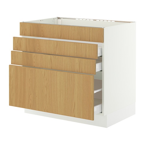 SEKTION / MAXIMERA base cab f cktp / 4 fronts / 3 drawers, white / Sinarp oak veneer