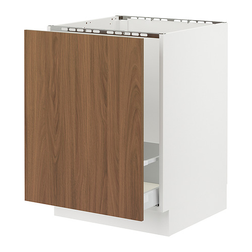 SEKTION / MAXIMERA base cab f sink / recycling, white / Tistorp brown walnut effect