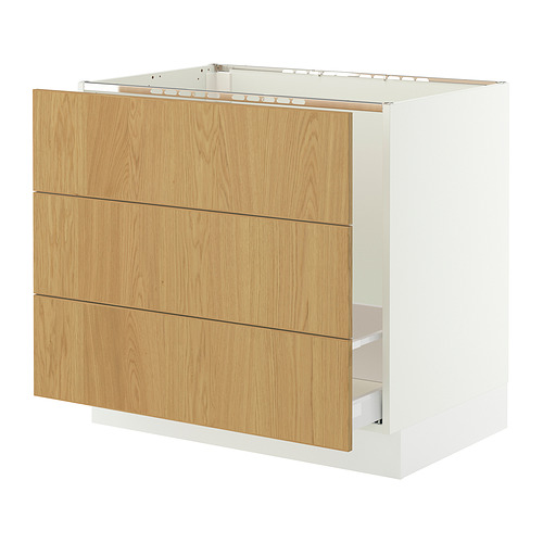 SEKTION / MAXIMERA base cab f sink / waste sort / 3 fronts, white / Sinarp oak veneer