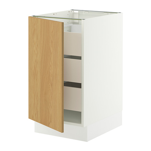 SEKTION / MAXIMERA base cabinet with 1 door / 3 drawers, white / Sinarp oak veneer
