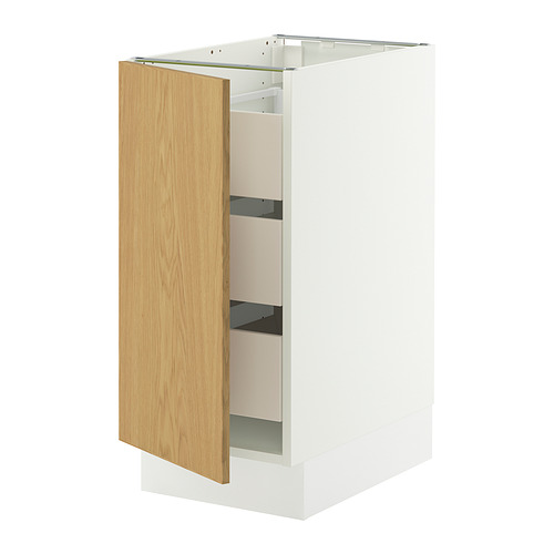 SEKTION / MAXIMERA base cabinet with 1 door / 3 drawers, white / Sinarp oak veneer
