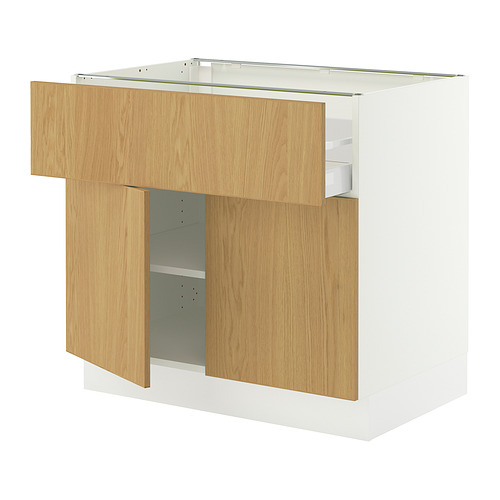 SEKTION / MAXIMERA base cabinet with drawer / 2 doors, white / Sinarp oak veneer
