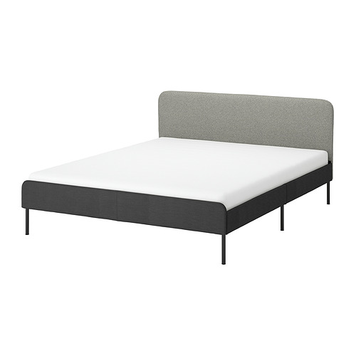 SLATTUM bed frame has soft upholstery and a padded headboard that complete the stylish and simple lines. The included extra headboard slipcover lets you change the look and style whenever you like!