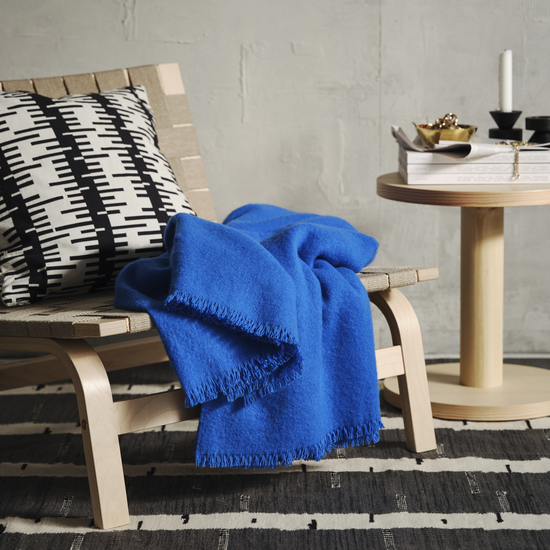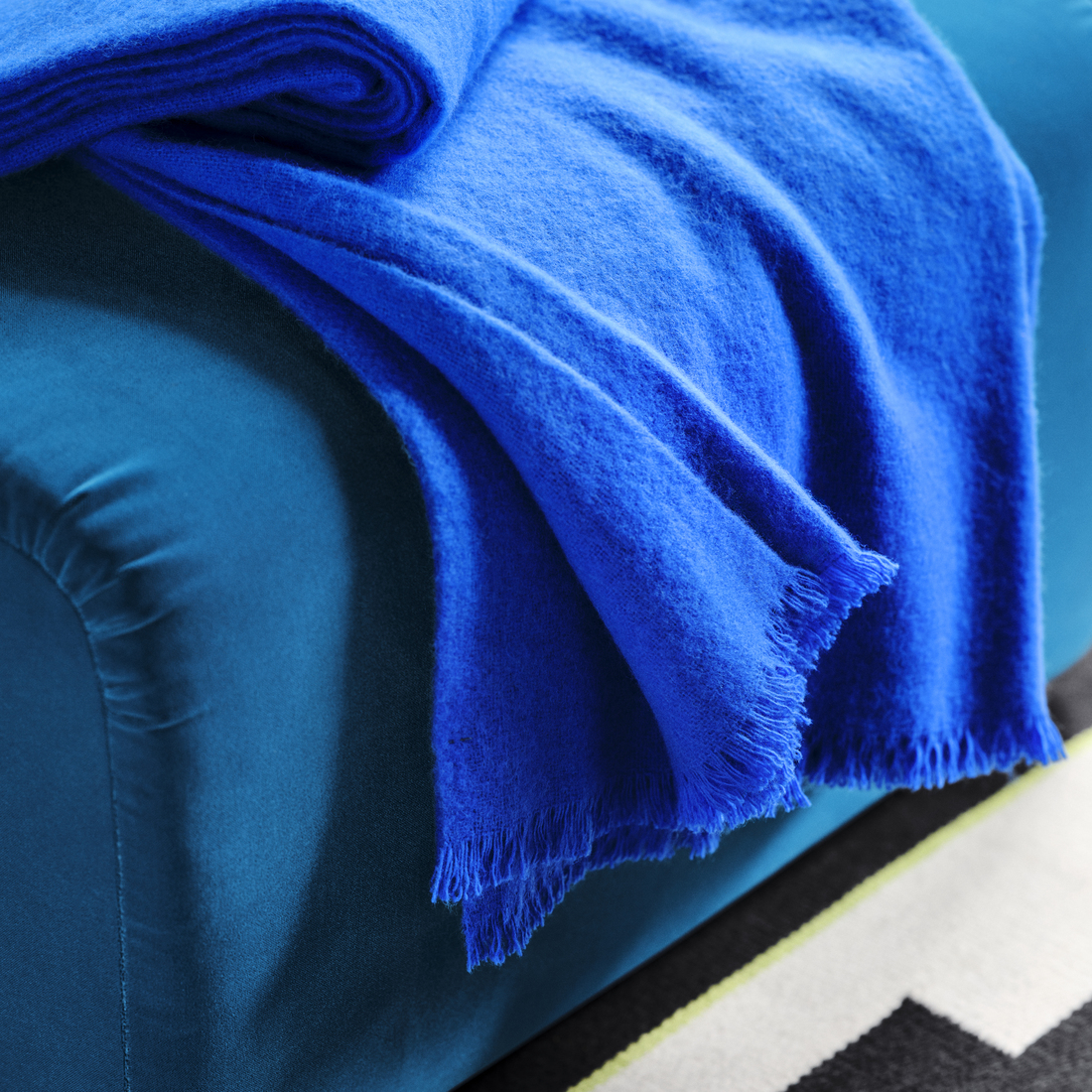 Warm and generously sized wool/merino wool throw in bright blue. Design by Paulin Machado as part of the STOCKHOLM 2025 collection where each piece is a celebration of Scandinavian design.